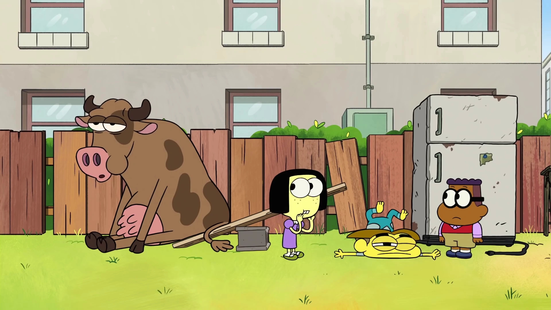 Then Cricket came up with the supplies to use as to catapult the chicken, as he used a cinder block and a wooden plank and try jumping on one end to launch, but only a little to launch it. Cricket decides they need more man power, and he asks a boy walking along the sidewalk in front of their yard if he would like to help them launch a chicken into space. The boy says his parents wouldn't approve, but Cricket says his parents aren't here, so the boy decides to skip his violin lessons and join in. As Cricket introduces himself and Tilly, the boy introduces himself as Remy.